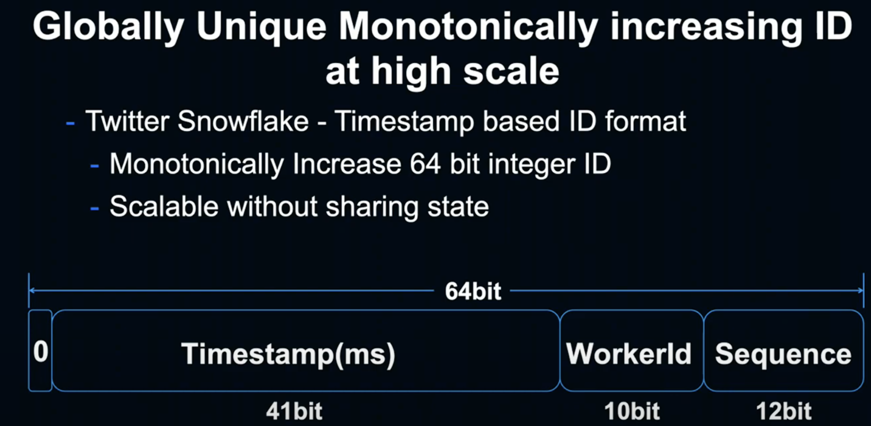 - 글로벌 유니크하고, 선형으로 커지는 ID 이고 백엔드에서 ID가 생성된다