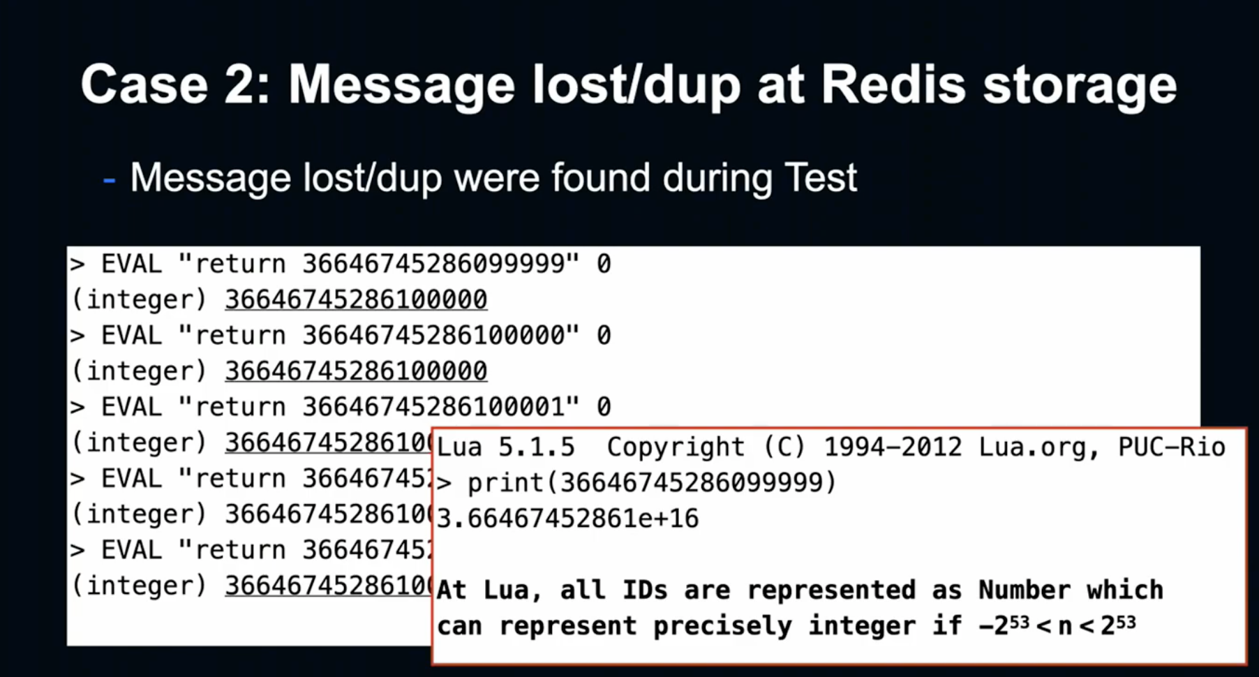lua script 에서 문자->숫자를 변환할 때 'redis lua 버전에 따라 integer 대응이 정상적이지 않음. LUA 5.3 에서는 정수형이 도입이 되었지만, 하위호환성 때문에 여전히 이 문제는 있어서 루아에서 BigInteger를 구현하는 등 다른 방식으로 이용함)
